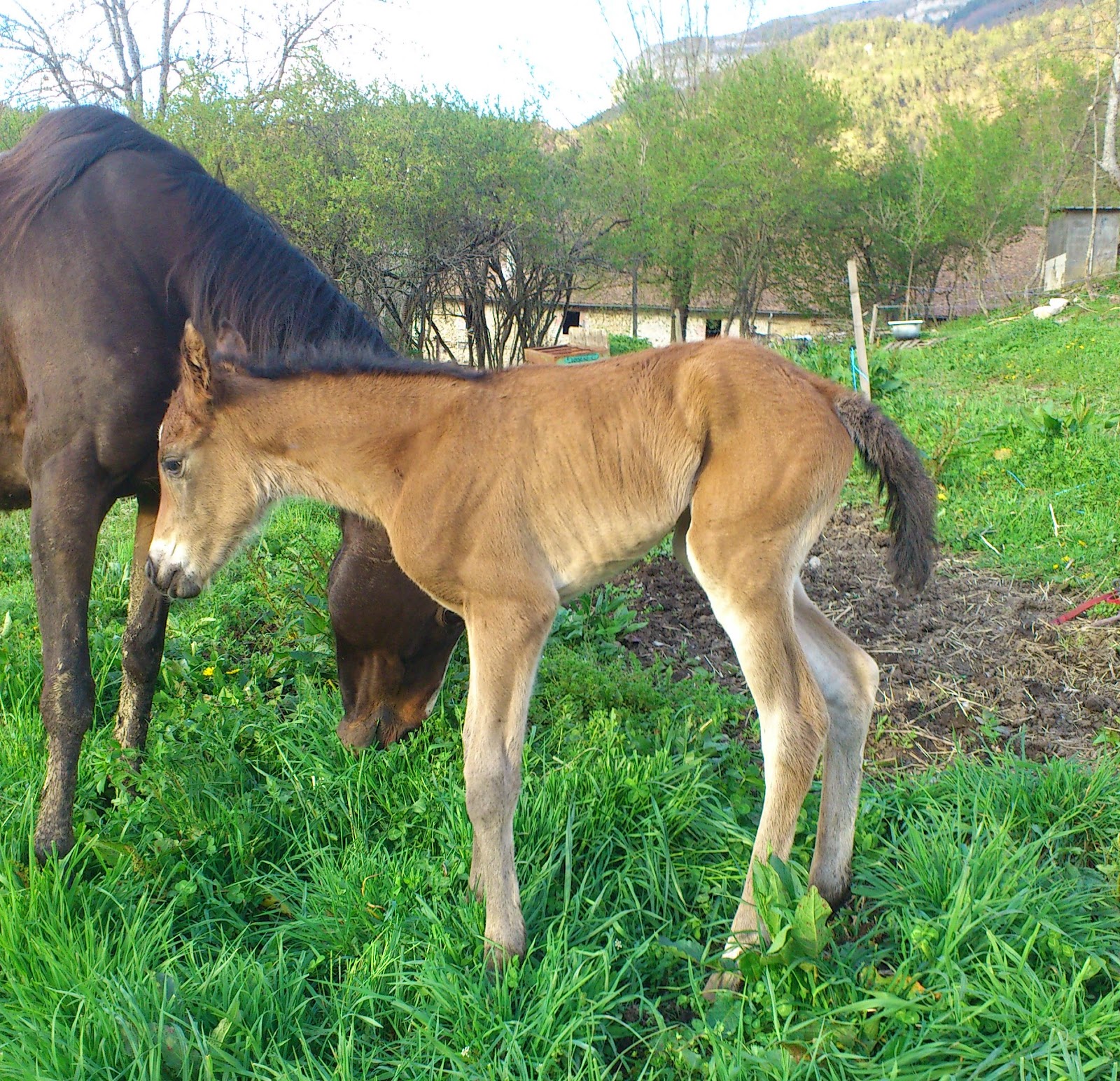 C’est dans la matinée que cette pouliche a vu le jour, dans le parc des Merisiers, entourée de Pugtalyk, Hezel et Lune. Lazuli la protège farouchement et en prend grand soin, pas question qu’il lui arrive quelque chose.